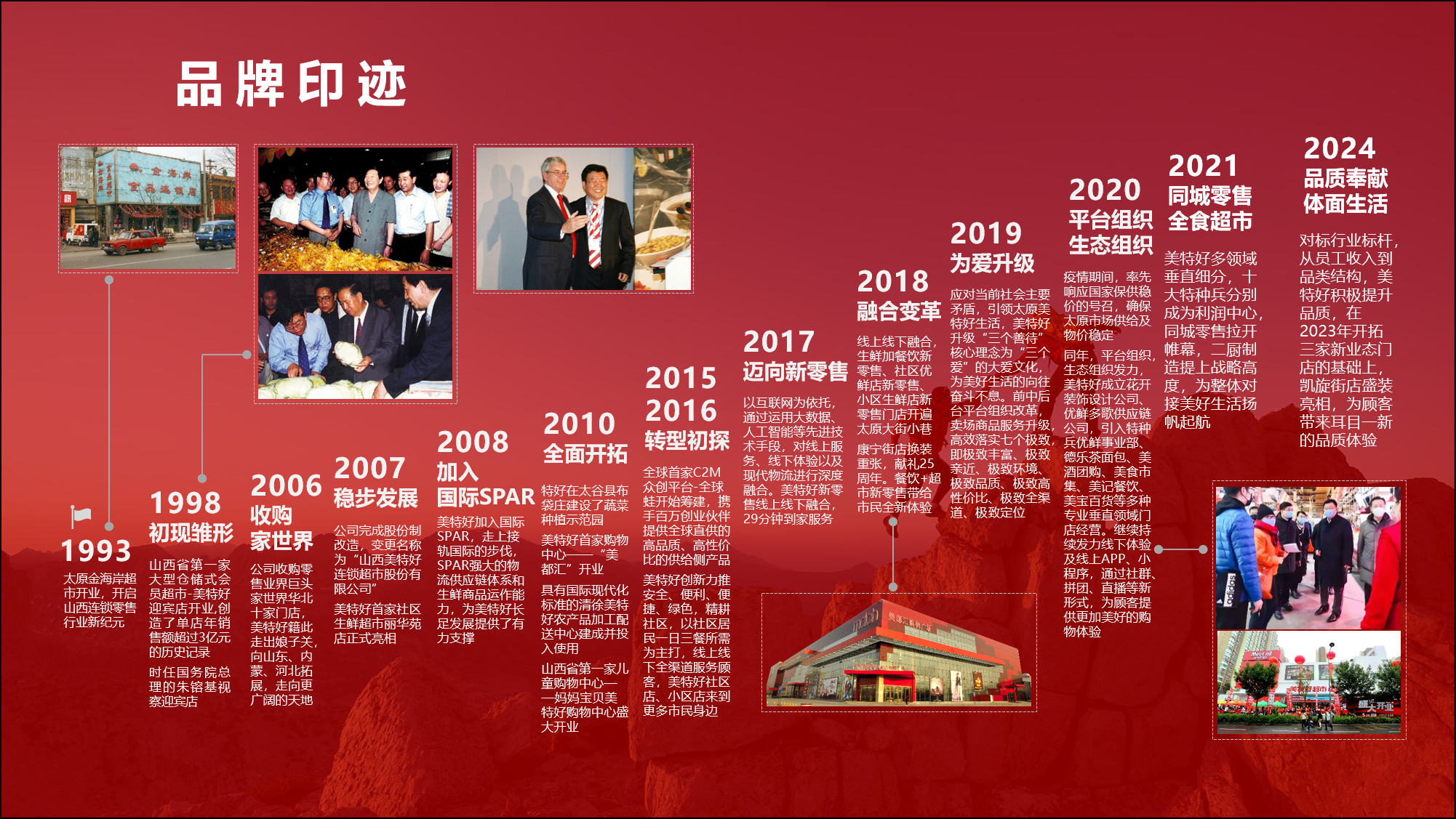 疫情期間,率先響應(yīng)國家保供穩(wěn)價的號召,確保太原市場供給及物價穩(wěn)定。同年,平臺組織,生態(tài)組織發(fā)力,美特好成立花開裝飾設(shè)計(jì)公司、優(yōu)鮮多歌供應(yīng)鏈公司,引入特種兵優(yōu)鮮事業(yè)部、德樂茶面包、美酒團(tuán)購、美食市集、美記餐飲、美寶百貨等多種專業(yè)垂直領(lǐng)域門店經(jīng)營。繼續(xù)持續(xù)發(fā)力線下體驗(yàn)及線上APP、小程序,通過社群、拼團(tuán)、直播等新形式,為顧客提供更加美好的購物體驗(yàn)。